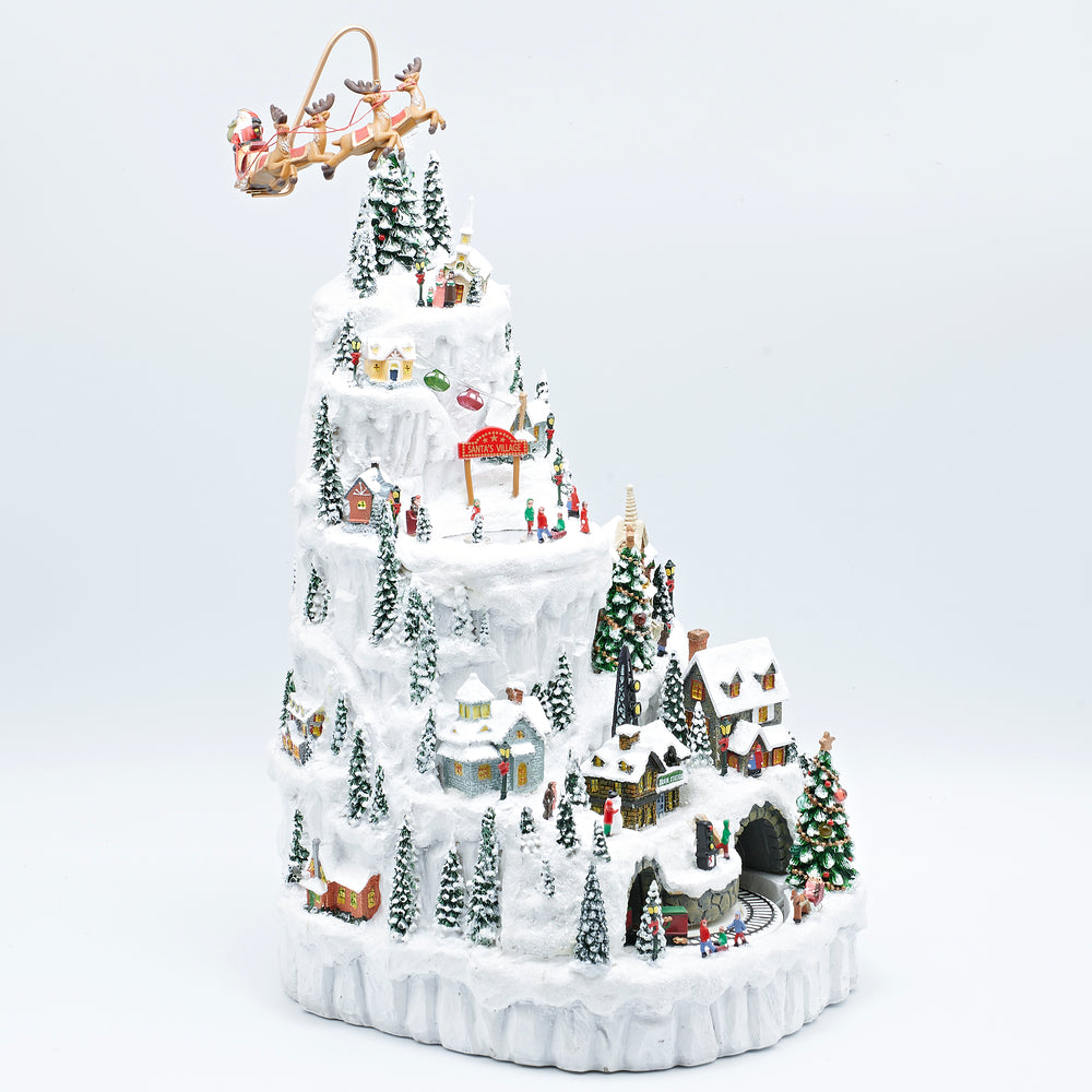 14.5"H Amusements Snowy Mountain Village with Rotating Santa Sleigh Skaters & Train