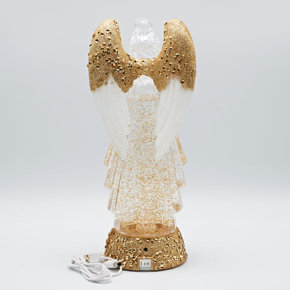 12.7"H Confetti Lites Lighted Swirl Angel with Gold Glitter