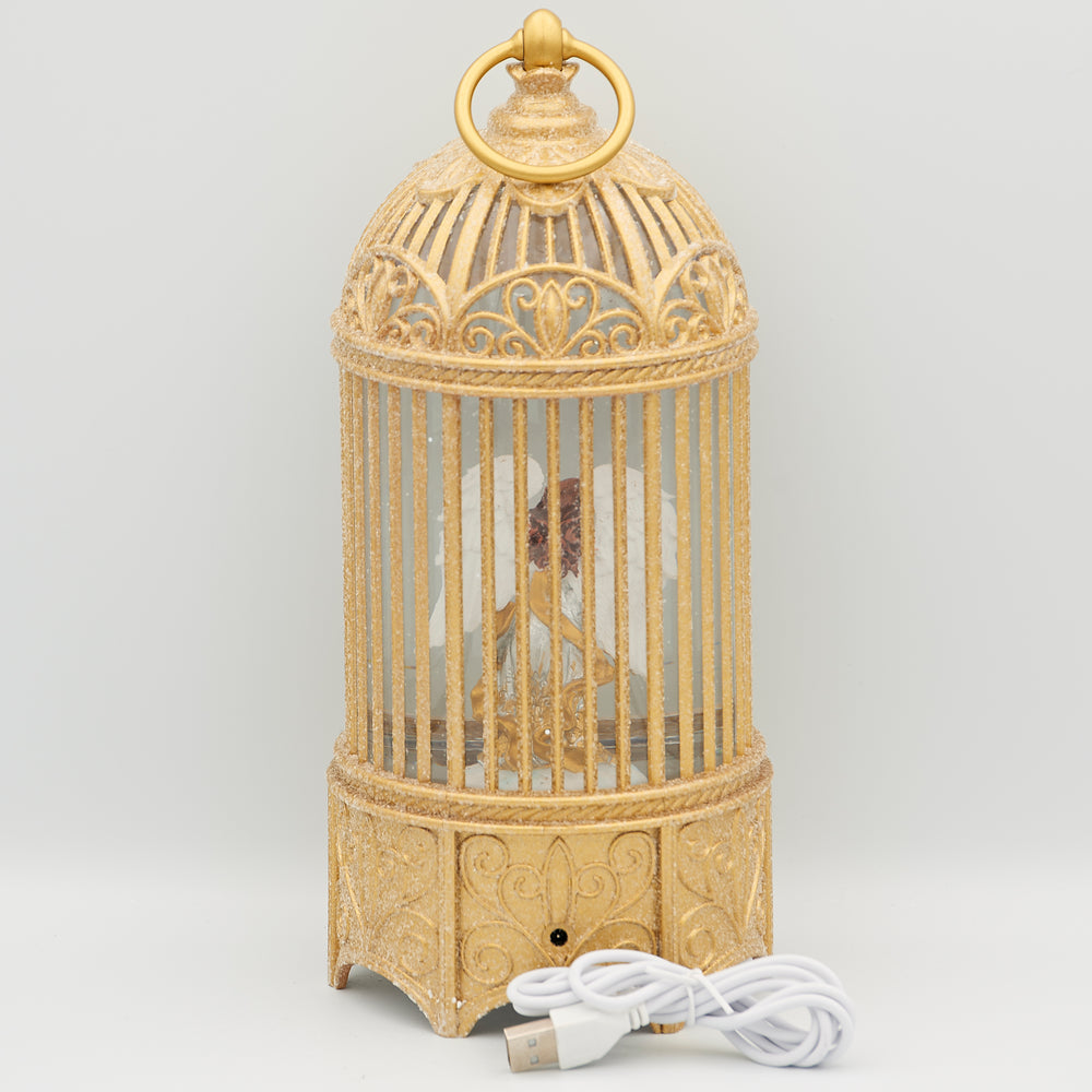 10.2"H Confetti Lites Lighted Swirl Birdcage with Angel & Dove