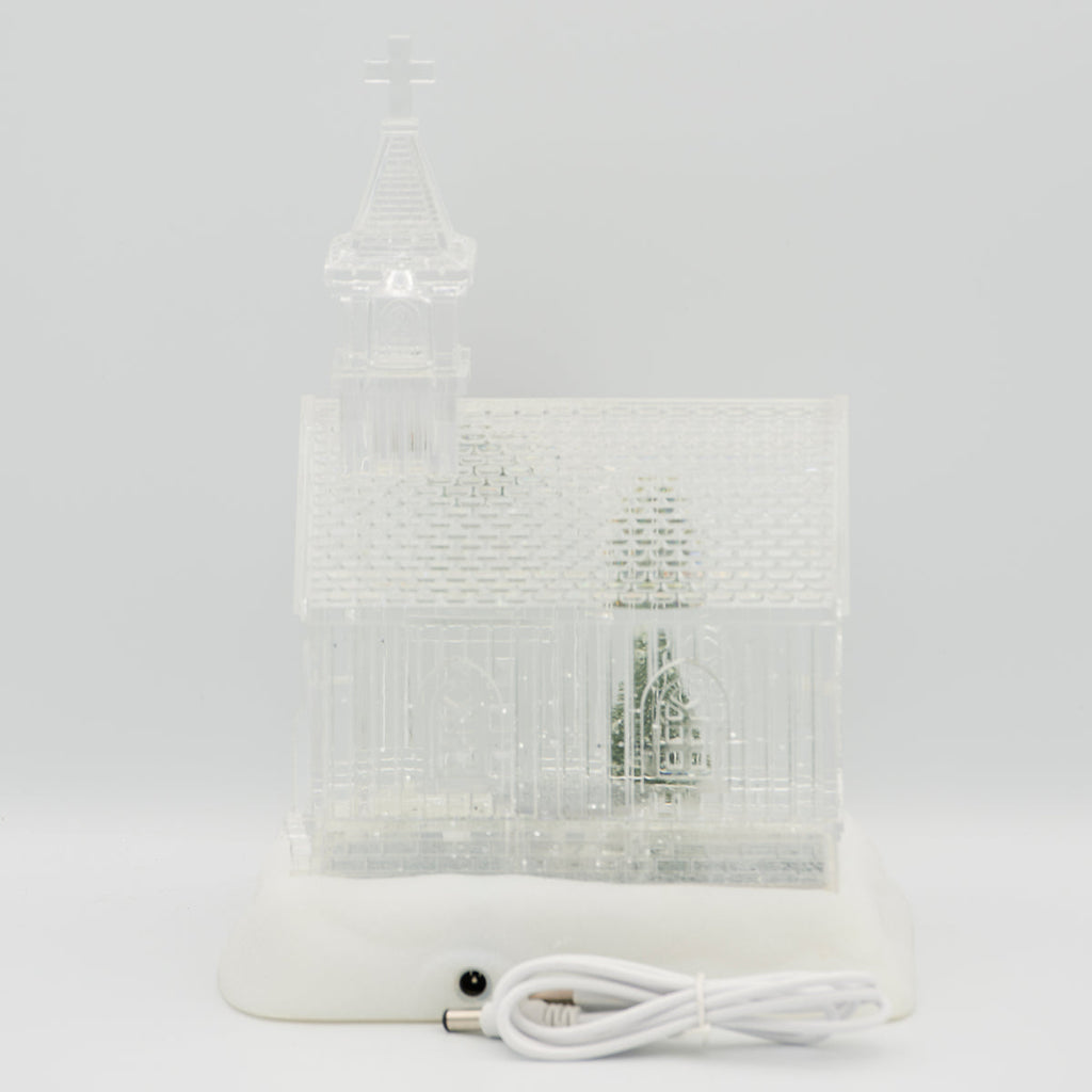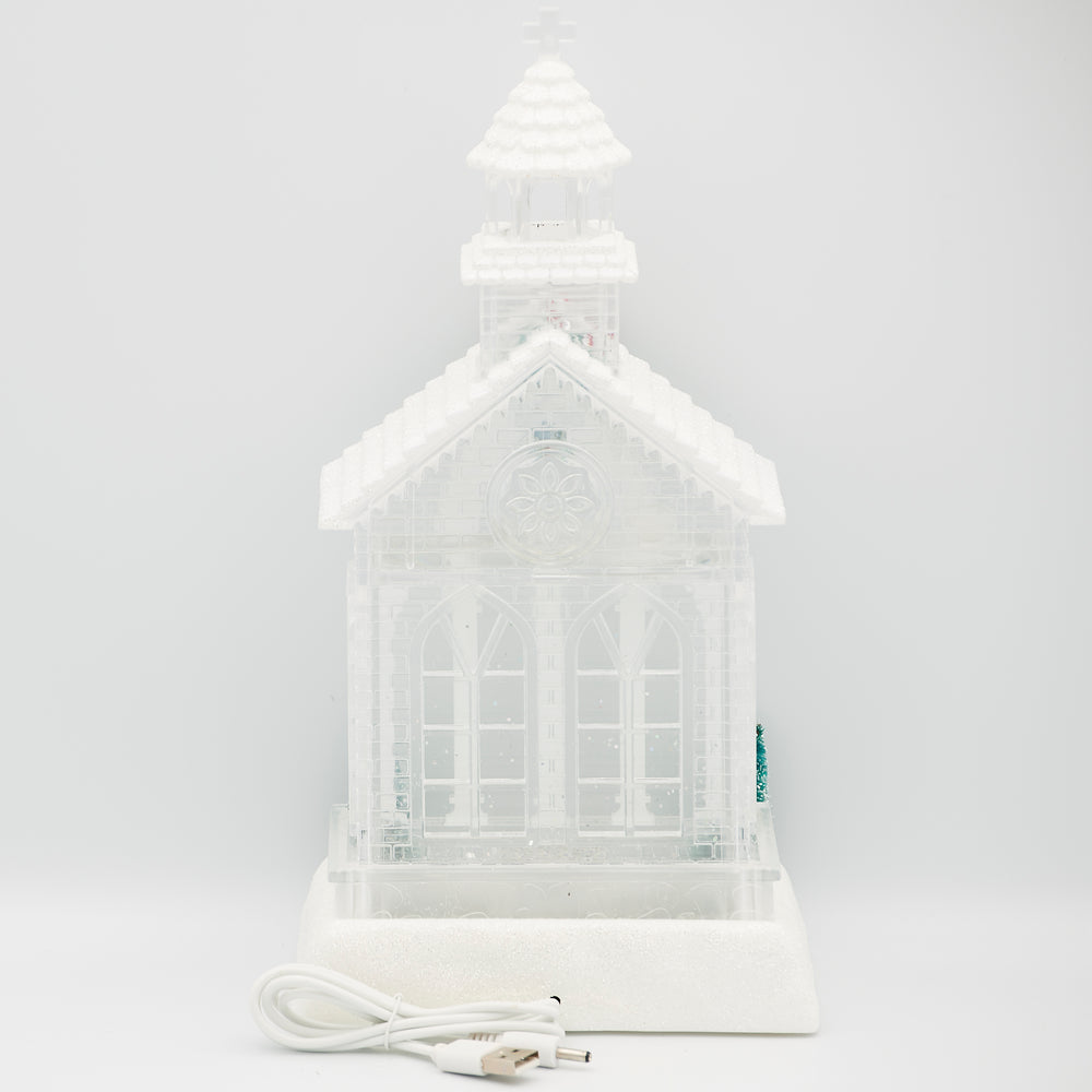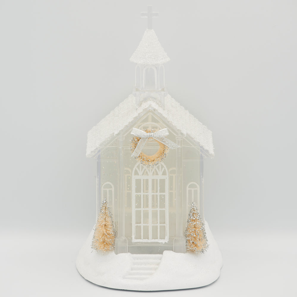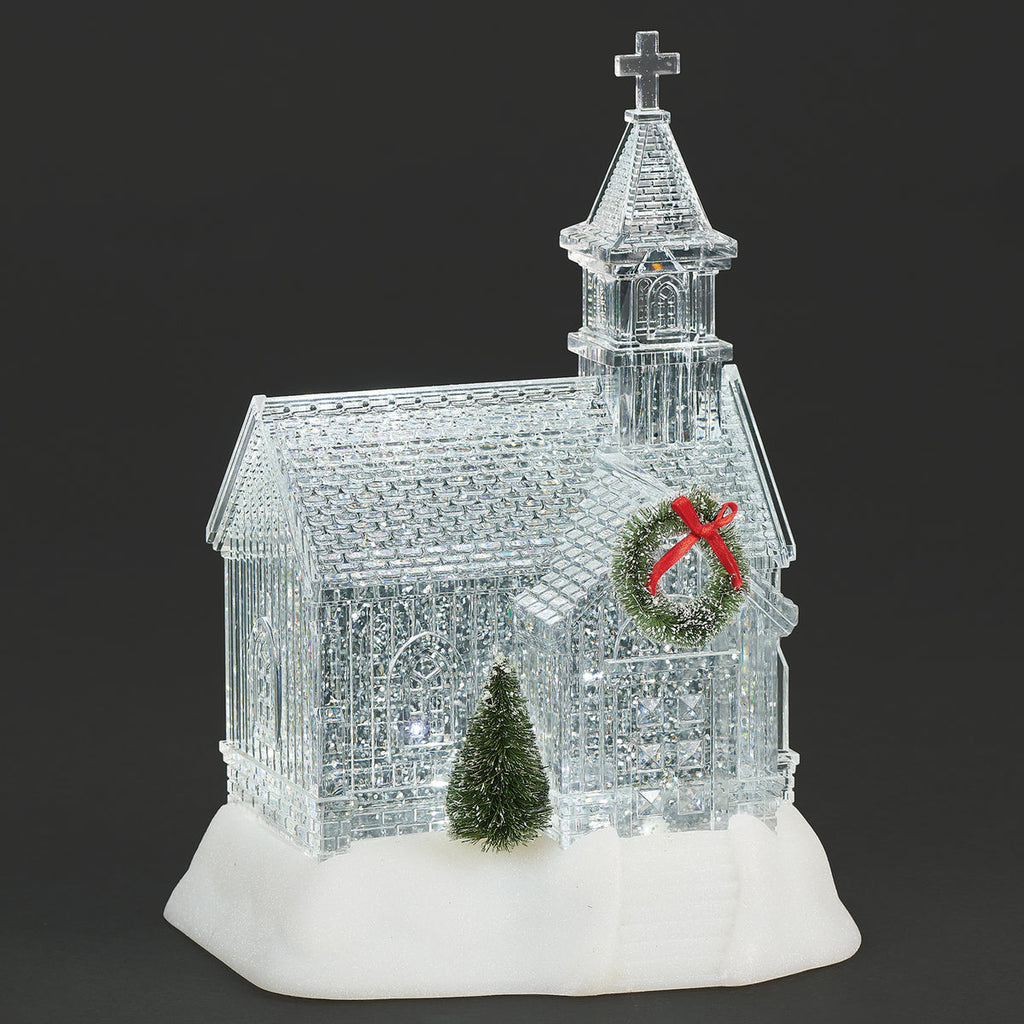 9"H Confetti Lites Lighted Swirl Clear Church with Wreath