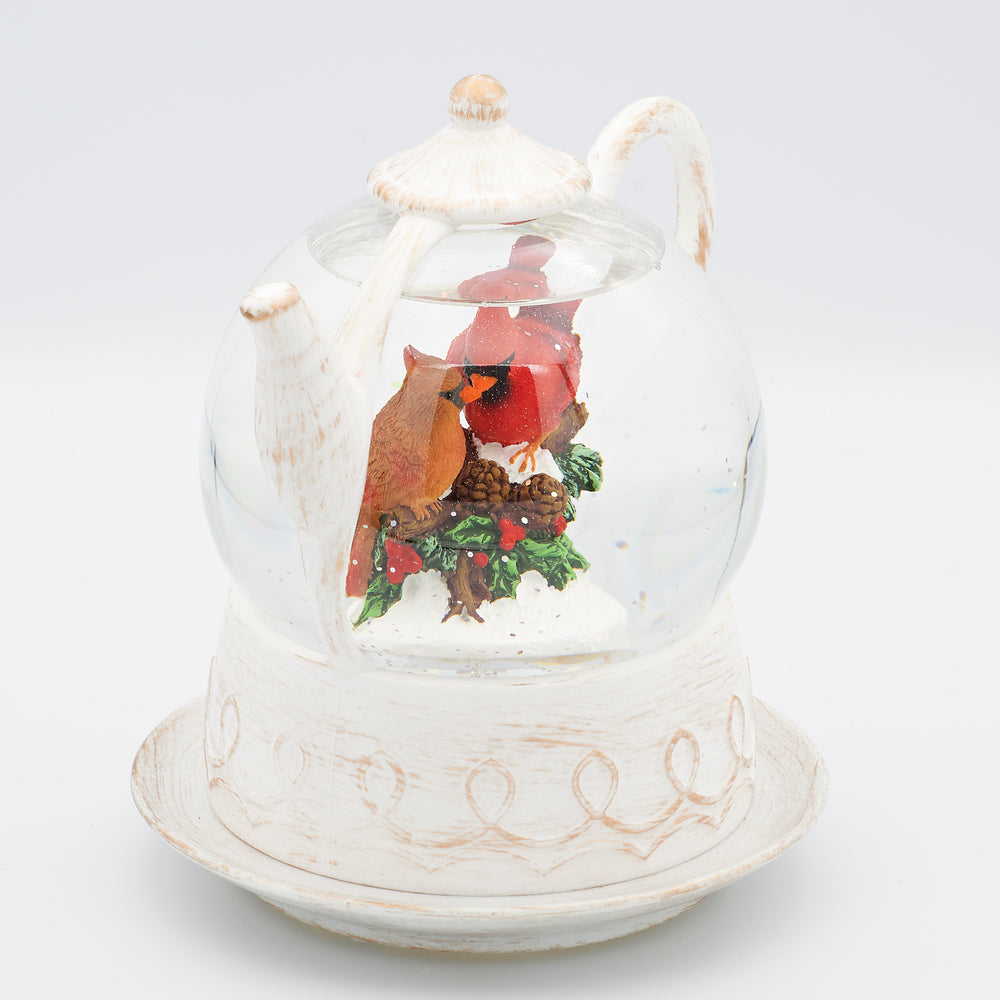 8"H Confetti Lites Lighted Swirl Teapot with Cardinal, Holly & Pine