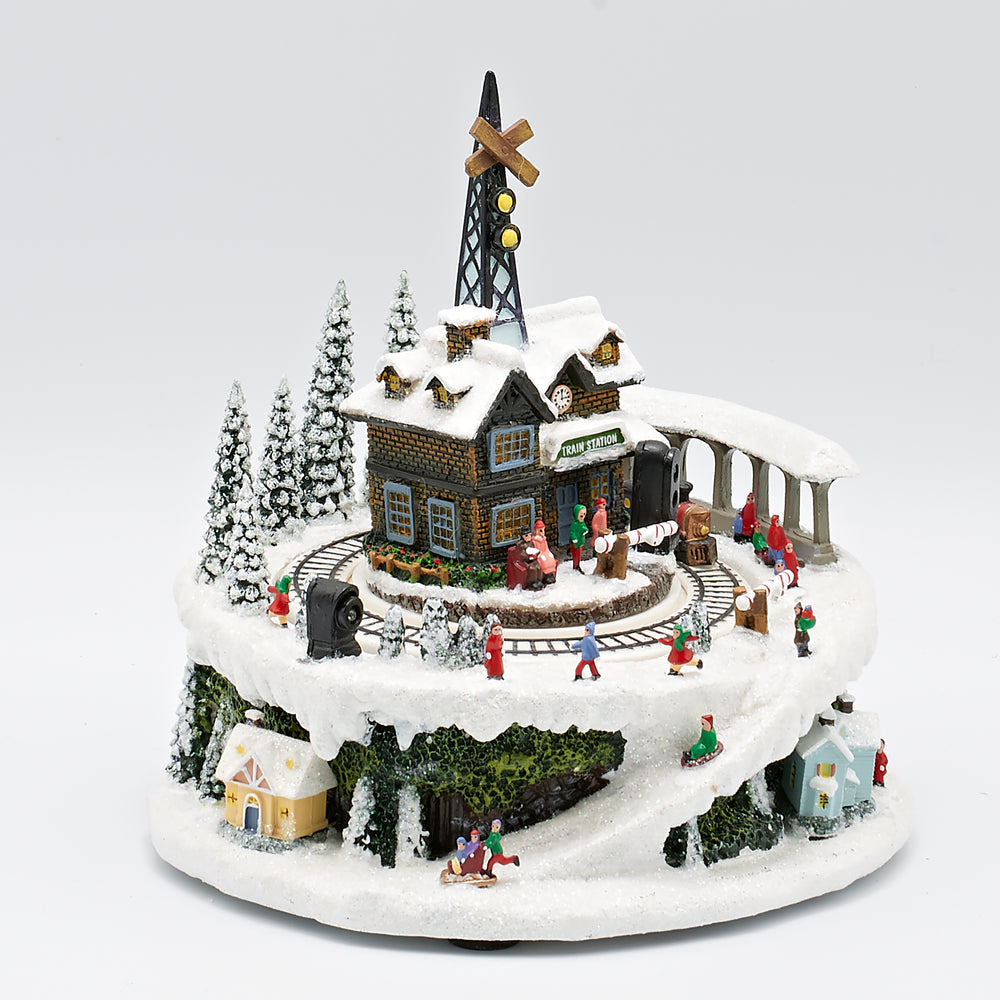 6.75"H Amusements Lighted Musical Train Station with Rotating Train