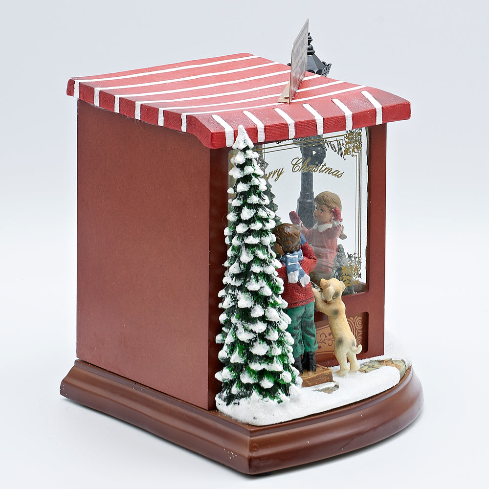 5"H Musical LED Red TV Children with Snowman and Snowfall